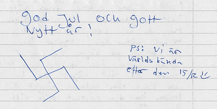 Om en av ens vänner grips för en våldsam attack och därmed får spendera jul och nyår bakom galler hör man självklart av sig. Och bifogar ett hakkors.
