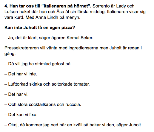 5. För att han beställer pizza så här – och har haft en romantisk middag på Pizzeria Sorrento i Västertorp.