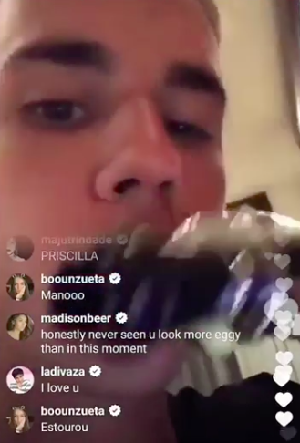 En liten stund efter bildspammen drar Biebs igång en livevideo där han, märkbart påverkad, säger att han är sugen på att göra någonting galet. Detta snappades upp av Power Hit Radio som även hann spela in filmen.