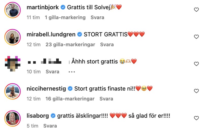 "Grattis älsklingar! Så glad för er!", skriver Lisa Borg som också väntar barn.