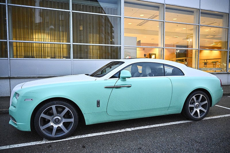 Jan Emanuels specialskrivna lapp på sin bil – detaljen på hans Rolls Royce