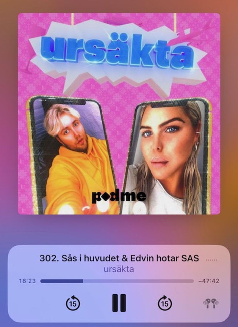 Det innebär att Ursäkta podden kommer fortsätta släppa avsnitt varje vecka, men man behöver betala för att kunna lyssna på avsnitten. Edvin och Johanna har även bytt plats där de spelar in podden.