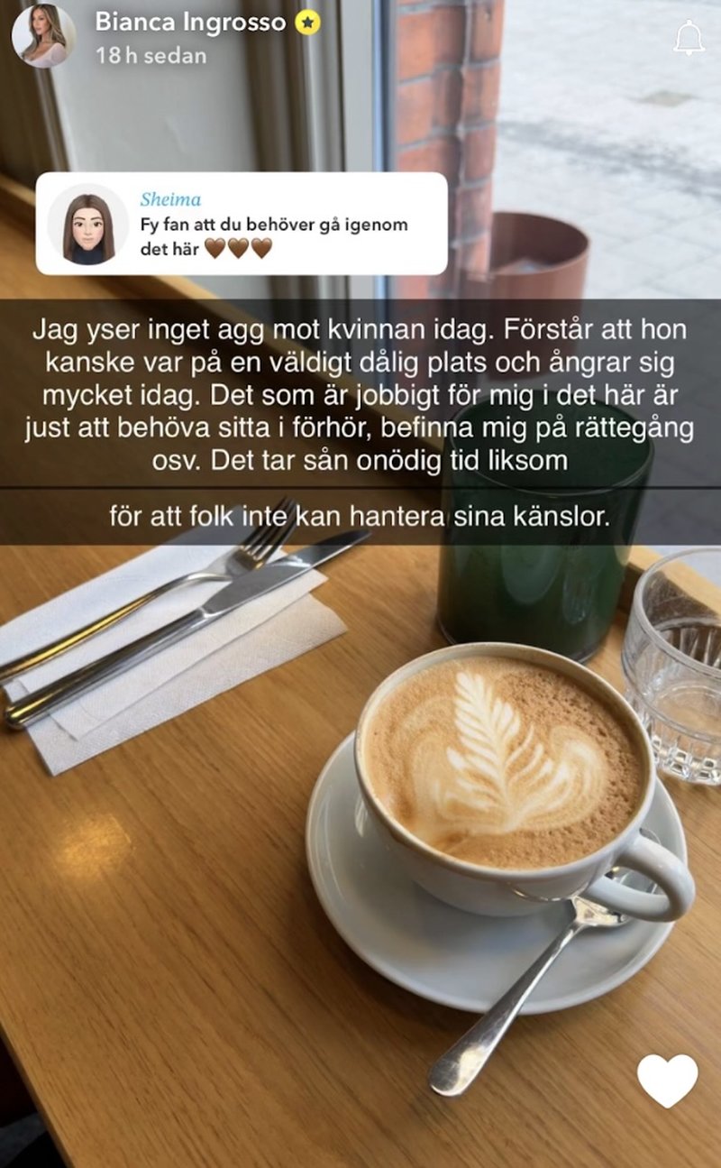 En polisanmälan gjordes mot kvinnan och i veckan delade Bianca en bild på sin Snapchat-story med texten: