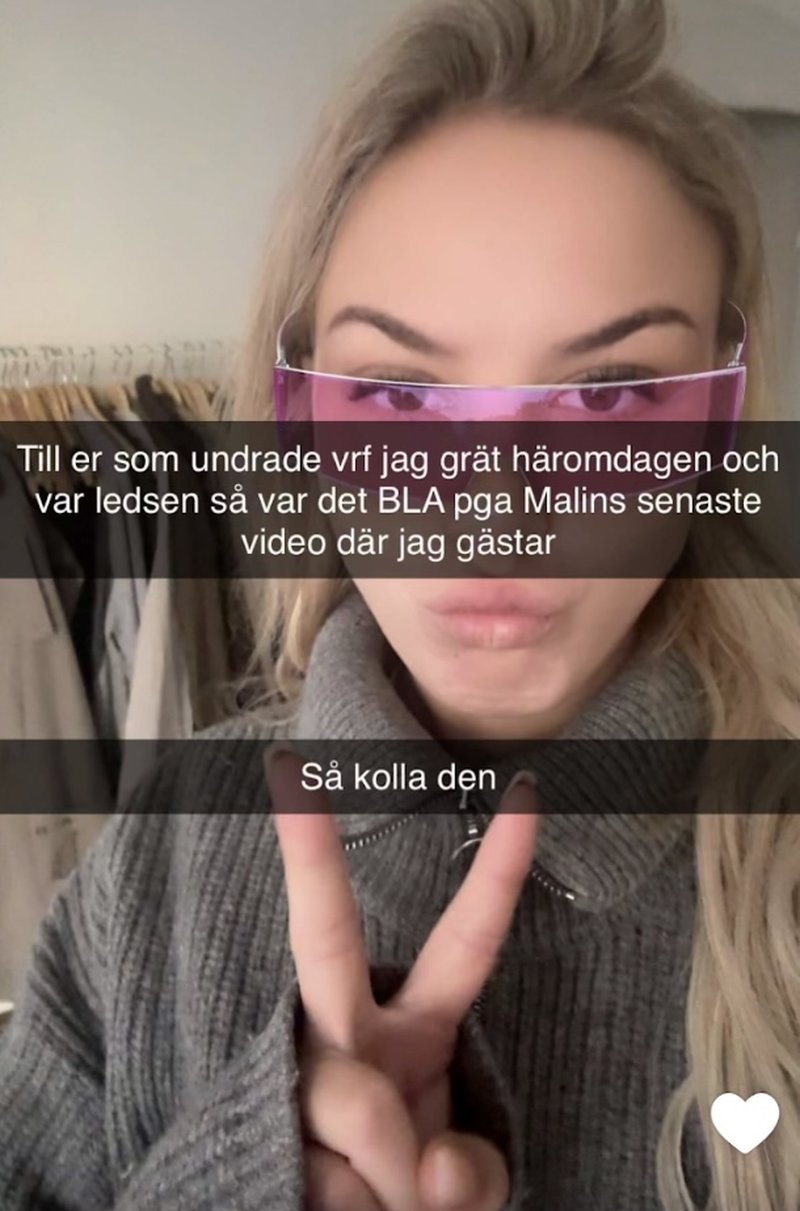 "Till er som undrade varför jag grät häromdagen och var ledsen så var det bl.a. på grund av Malins senaste video där jag gästar"