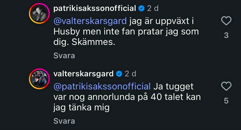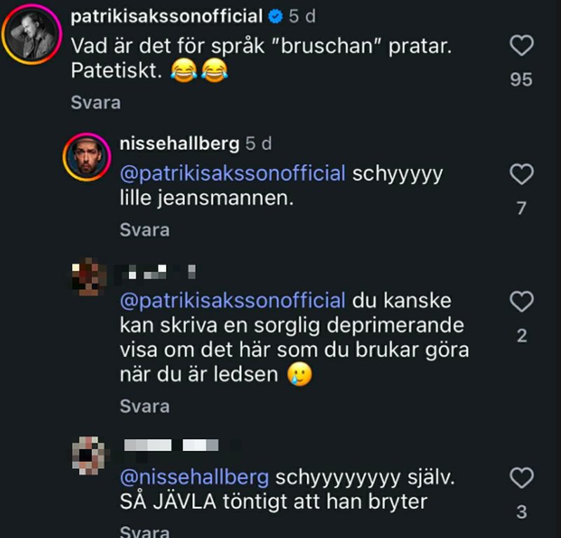 En av de som snabbt var inne med klorna ute var artisten Patrik Isaksson. Då hoppade även komikern Nisse Hallberg in i ringen och svingade mot Patrik. Det hela har triggat igång kommentarsfältet ytterligare.