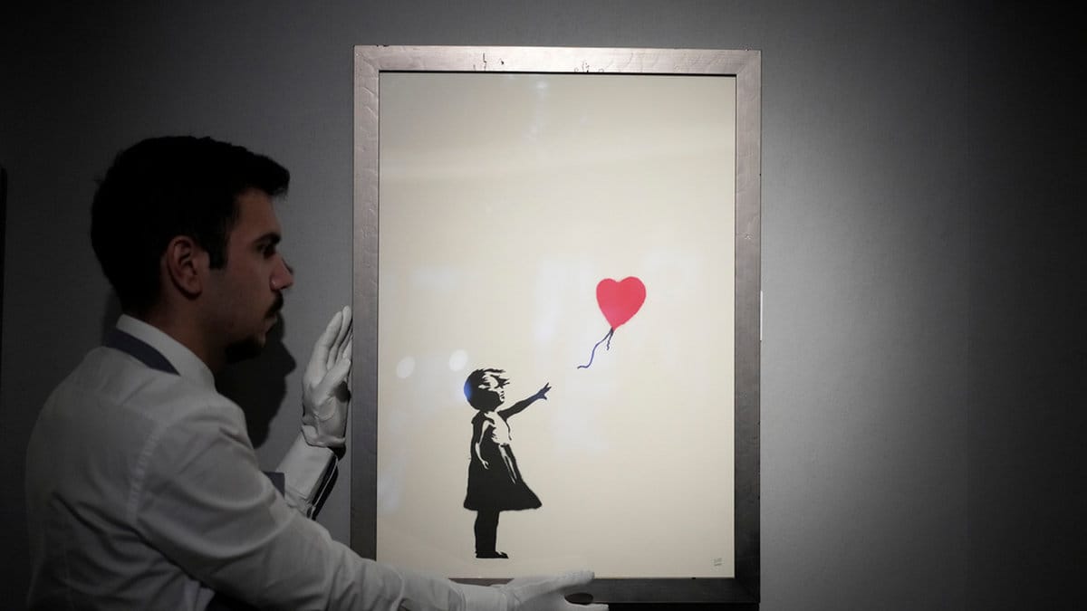 På utställningen visas sammanlagt 145 verk av Banksy, bland dem "Flicka med ballong" från 2002.