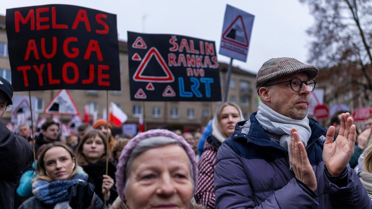 — Nedmonteringen av en demokrati börjar alltid med att regeringen tar över fri media, ropade LRT-journalisten Edvardas Kubilius från scenen, enligt radion.