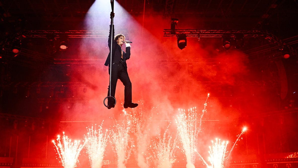 — Det finns två motorer uppe i taket och den ena säkerhetsutlöste och stannade. Så det gick helt enkelt inte att sänka ned den, säger Anders Wistbacka, Melodifestivalens projektledare.