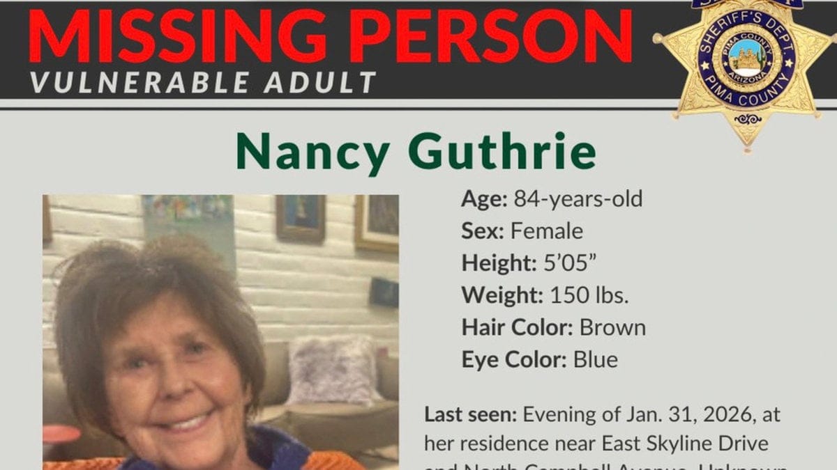 Nancy Guthrie anmäldes försvunnen från sitt hem i Arizona för en vecka sedan. Enligt poliskällor har utredarna hittat spår som tyder på att hon har blivit bortförd.