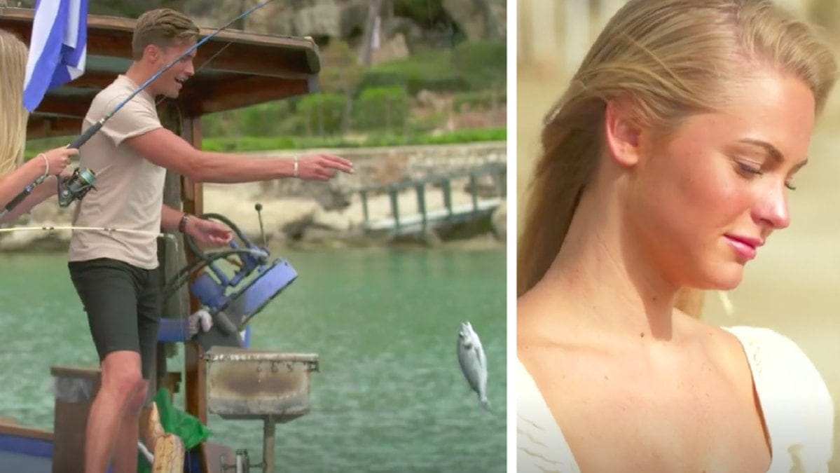 Bägge tjejerna fick upp varsin fisk som de sedan grillade och åt i Bachelor-Simons sällskap.