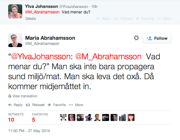 Det gick inte så bra för moderaterna i EU-valet. Det gick däremot bra för miljöpartiet, som självklart firade. Vilket retade upp den moderata riksdagsledamoten Maria Abrahamsson. Så hon gjorde som hon brukar. Hon twittrade lite.