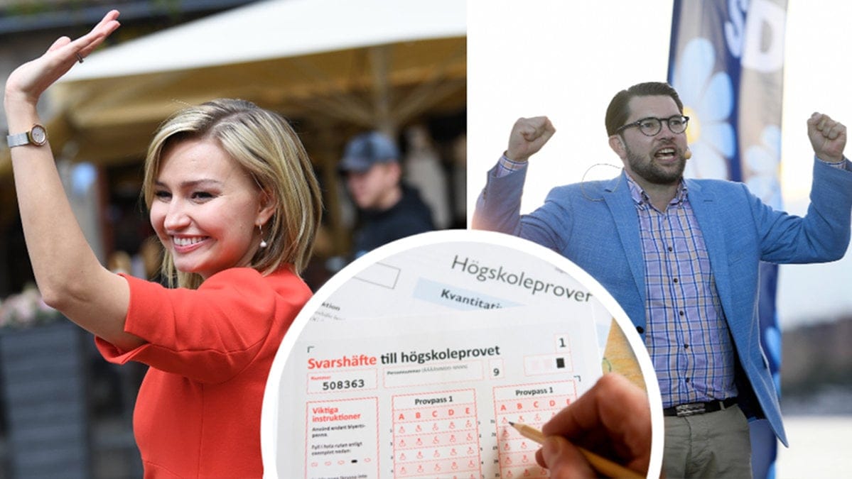 Jimmie Åkesson (SD) och Ebba Busch Thor (KD) har båda skrivit högskoleprovet. Jimmie Åkesson fick 1,3 poäng och tätt därefter kom Ebba Busch Thor med sina 1,2 poäng. Per Bolund (MP) fick en ännu högre siffra på 1,9 poäng.