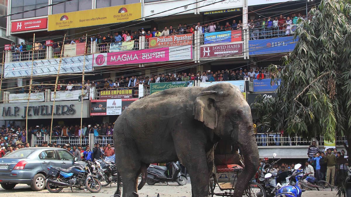 BILDEXTRA: Fullkomligt kaos när elefant löpte amok i staden