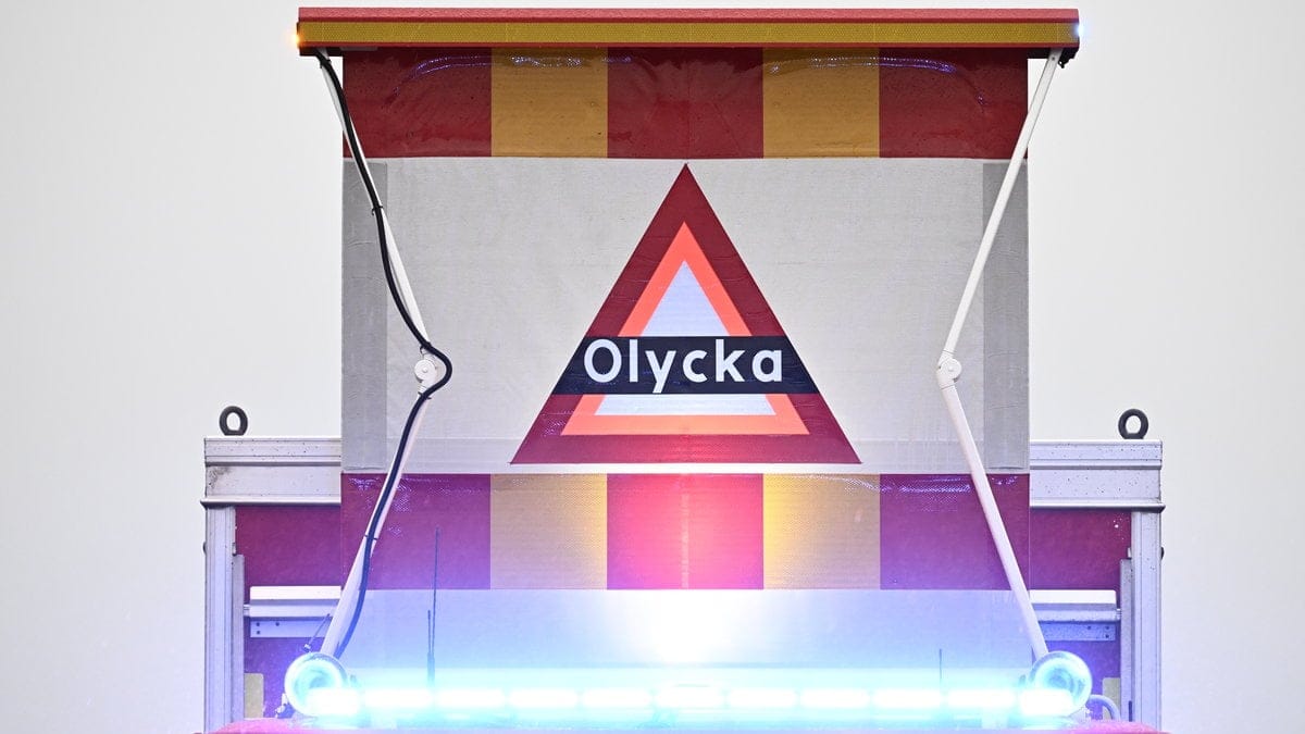 Polis bistår räddningstjänsten på olycksplatsen.