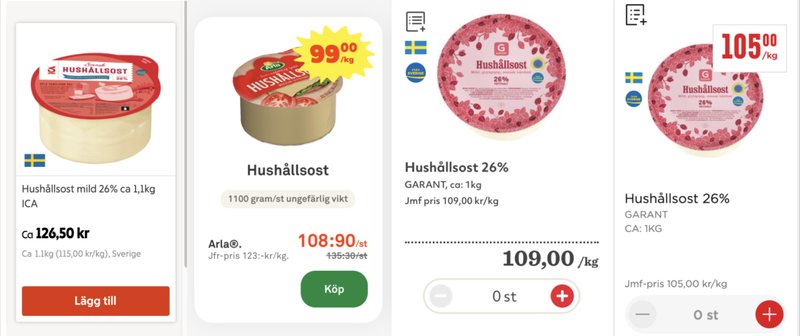 Collaget ovan visar respektive kedjas billigaste hushållsost.