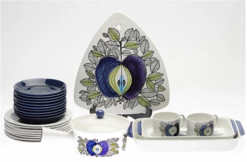 Rörstrand "Eden" med sitt karakteristiska blå äpple tillverkades från 1960. En service med 24 delar klubbades nyligen för 1 900 kronor.