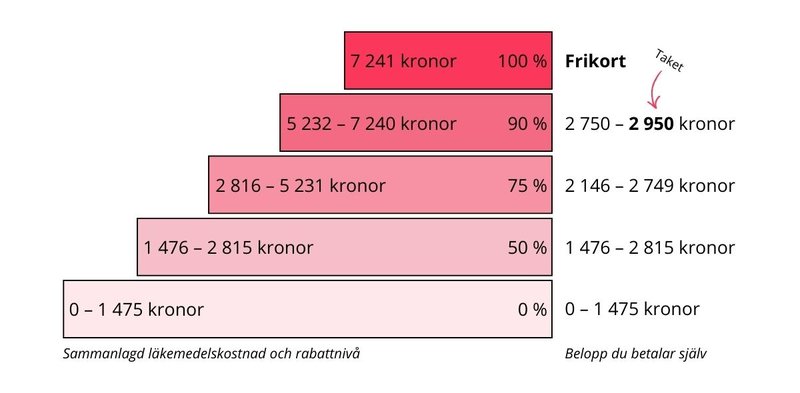 - Från 7 241 kronor och uppåt får du frikort för inköp av läkemedel som ingår i högkostnadsskyddet.