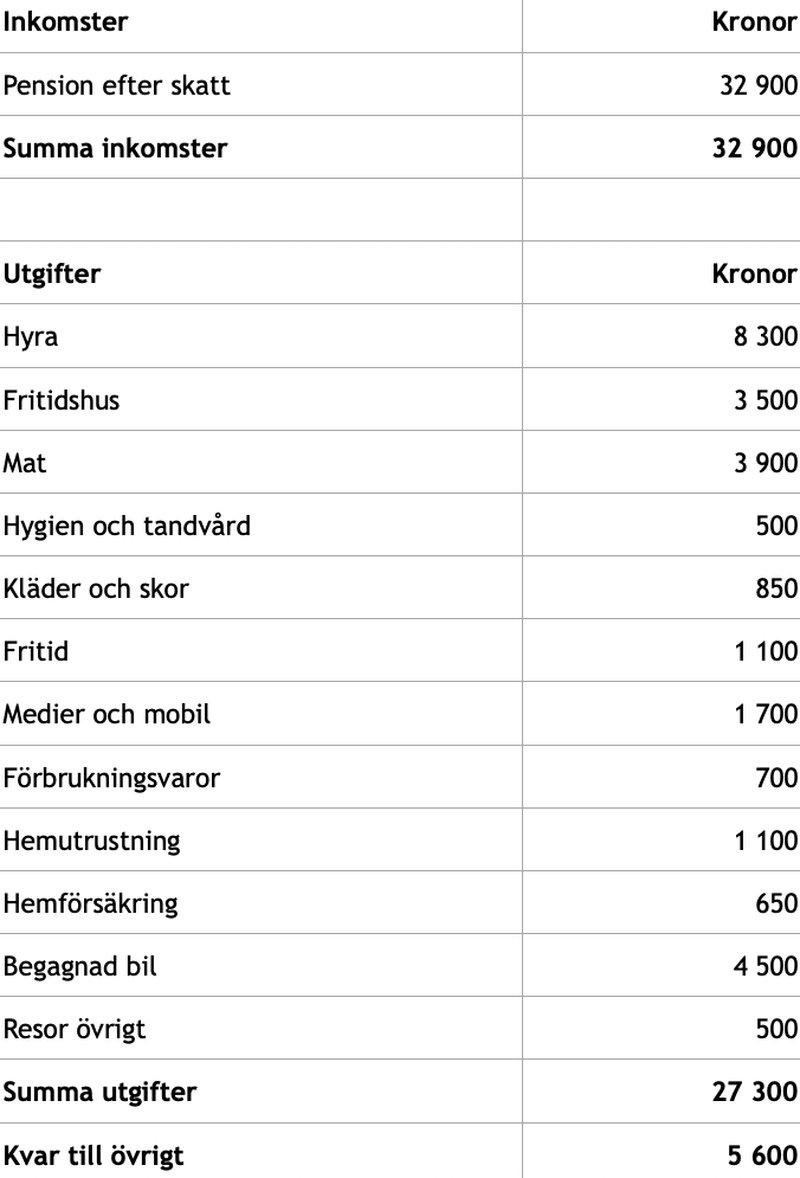 Budget för pluspensionären – 42 000 kronor i pension före skatt