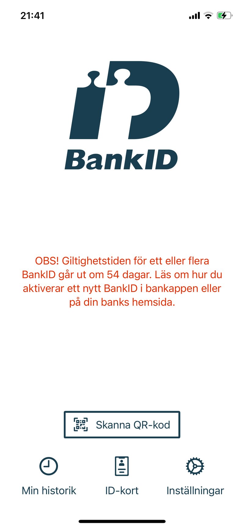 Blev du stressad så kan du andas ut. Du behöver inte själv hålla reda på när ditt BankID håller på att gå ut. En påminnelse dyker upp när du ska logga in i appen i god tid före det händer.