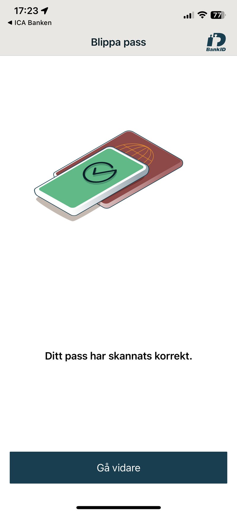 Det som krävs är ditt pass eller nationella ID-kort och att du har eller laddar ned din banks app, i mitt fall Ica-banken.