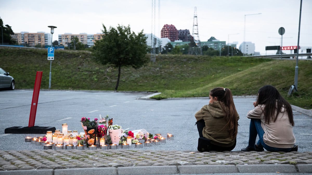 Ett av de vittnen som ringer SOS Alarm efter skottlossningen vid en snabbmatsrestaurang i Botkyrka kommun söder om Stockholm natten mot den 2 augusti 2020 försöker beskriva flickan som ligger svårt skadad framför honom. Precis dessförinnan har flera personer passerat i en vit Audi och med en automatkarbin, en kulsprutepistol och en revolver avlossat ett stort antal skott ämnade att träffa två män som befann sig på platsen.
