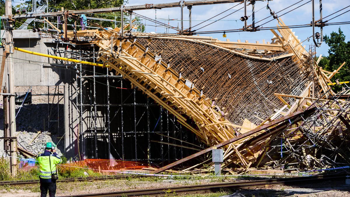 Det var i samband med gjutningen av en betongbro över järnvägen sommaren 2017 som olyckan inträffade. En ställning rasade och tolv personer skadades, flera av dem allvarligt.
