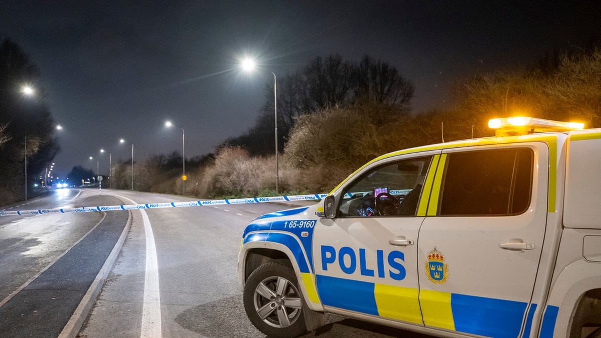 Polis på plats i Oxie i Malmö efter att en man hittats med skottskador i ett fordon i stadsdelen Hindby i Malmö natten till lördagen. Foto: Johan Nilsson/TT