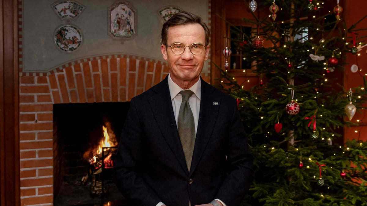 Framför gran och öppen spis på Harpsund önskar statsministern en god jul och ett gott nytt år och tackar alla som kämpat under inflationsåren. Han riktar sig till fack och arbetsgivare som ”höll igen på lönekrav och löneavtal, för att inte elda på inflationsbrasan”, till alla i välfärden och andra hårt arbetande svenskar.