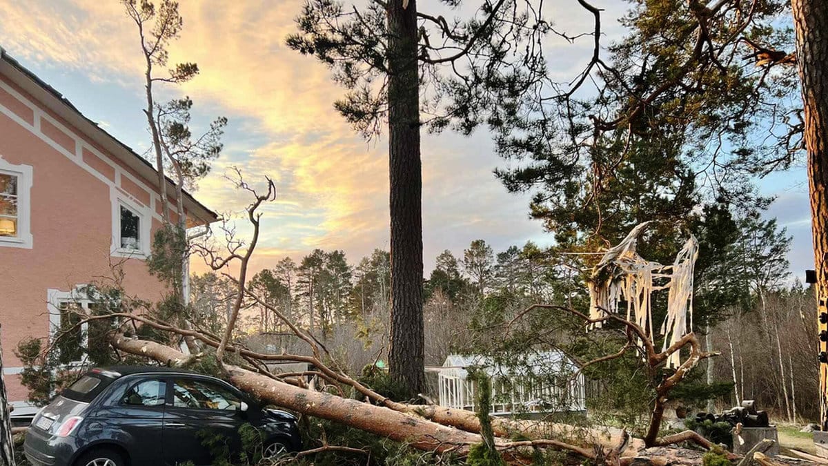 — En familj har fått ett jättestort träd över sin bil så den är bara kaputt.