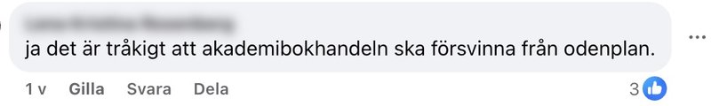 "Ja det är tråkigt att akademibokhandeln ska försvinna från odenplan."