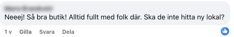 "Neeej! Så bra butik! Alltid fullt med folk där. Ska de inte hitta ny lokal?"