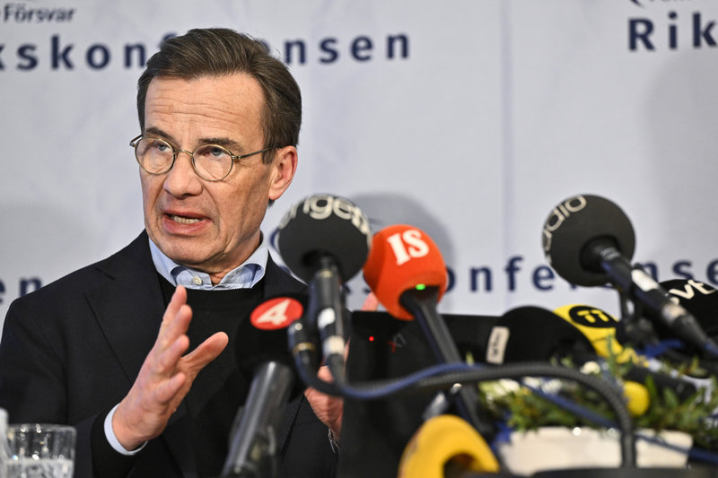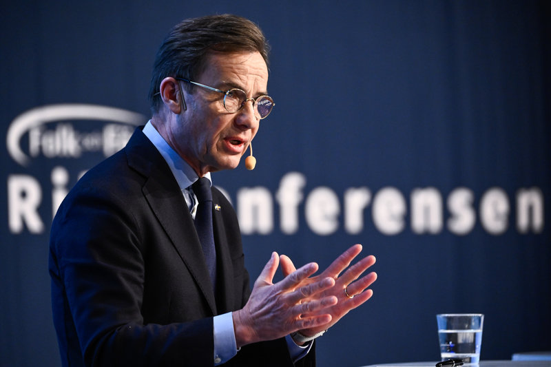 Statsminister Ulf Kristersson (M) presenterar nyheten vid en pressträff på Folk och försvars rikskonferens i Sälen.