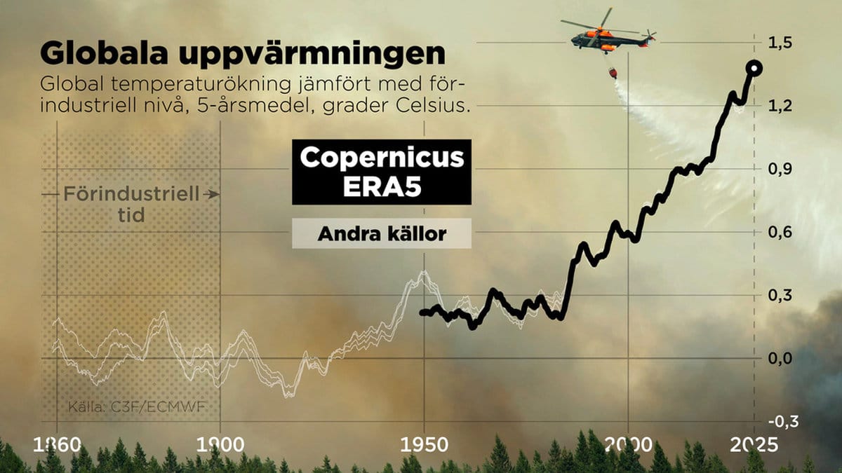 2025 var bara 0,13 grader svalare än rekordåret 2024 och 0,01 grader under 2023.