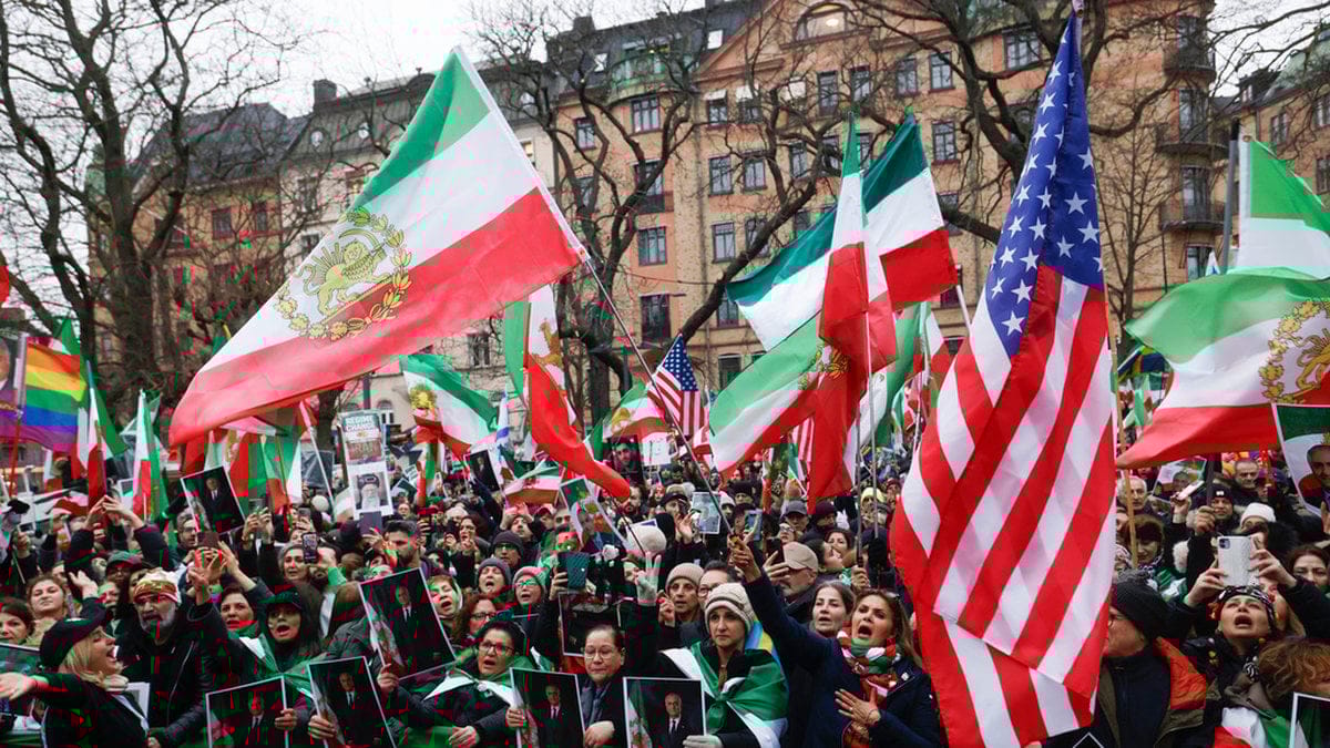 Några timmar efter USA:s och Israels samordnade attack mot Iran samlades människor på flera ställen i Europa för att demonstrera mot Irans regim, och även för att ställa sig bakom anfallen. På Norra Bantorget i Stockholm fanns många anhängare till Reza Pahlavi, äldste son till den siste shahen av Iran. I folkhavet syntes flaggan ”Lejonet och solen”, som användes innan shahen störtades 1979, precis som USA:s och Israels flaggor.