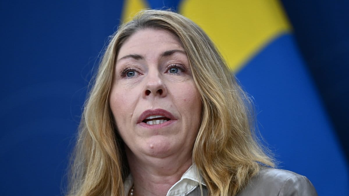 Elisabet Lann (KD), sjukvårdsminister, på en pressträff tidigare i mars. Arkivbild. Foto: Anders Wiklund/TT
