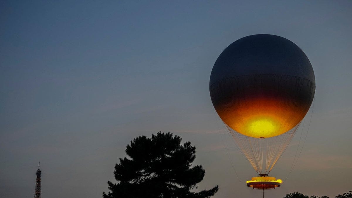 Priset på helium har skenat till följd av krisen i Mellanöstern. På bilden OS-ballongen som användes i Paris 2024. Foto: Aurélien Morissard/AP/TT