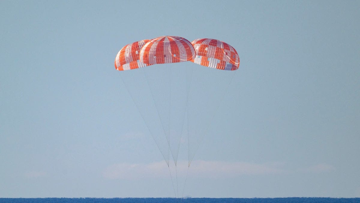 Efter nio dygn, en timme och 32 minuter i rymden är besättningen nu tillbaka på jorden. Klockan 02.07 svensk tid landade expeditionens farkost Orion med fallskärmar i Stilla havet utanför San Diego i USA.