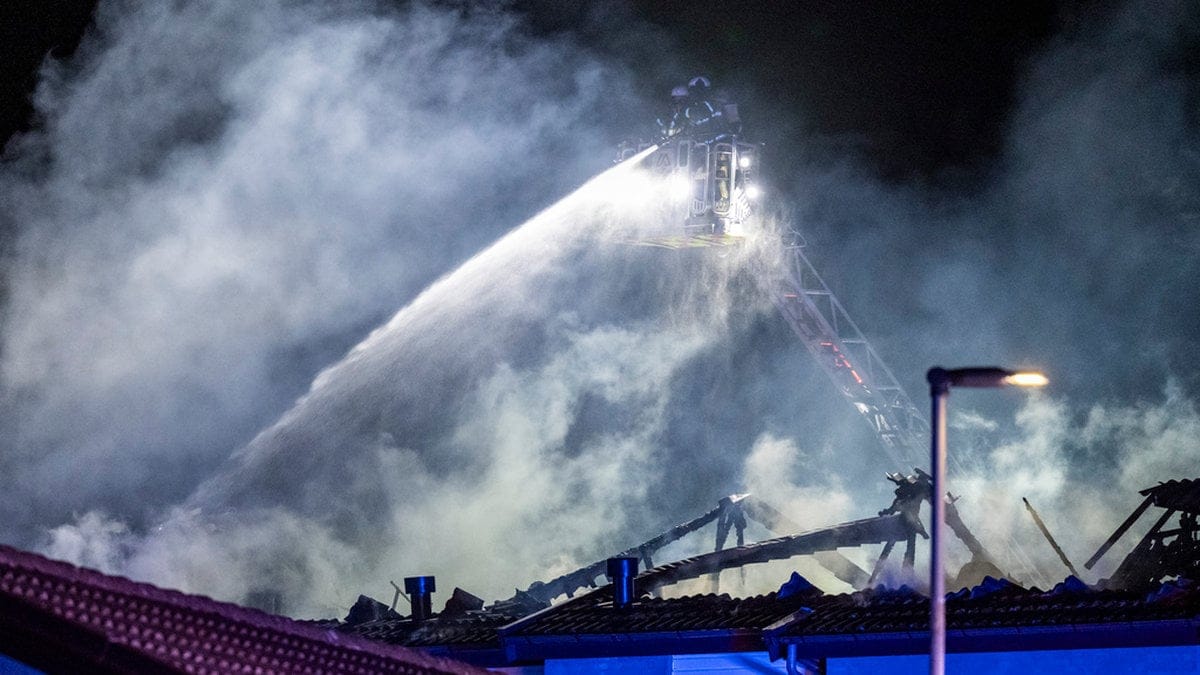 Larmet om branden i Hjärup, som ligger mellan Malmö och Lund, kom på måndagskvällen, då rök sågs komma ut ur en lägenhet. Den spred sig sedan snabbt upp till vinden och taket, som senare rasade in.