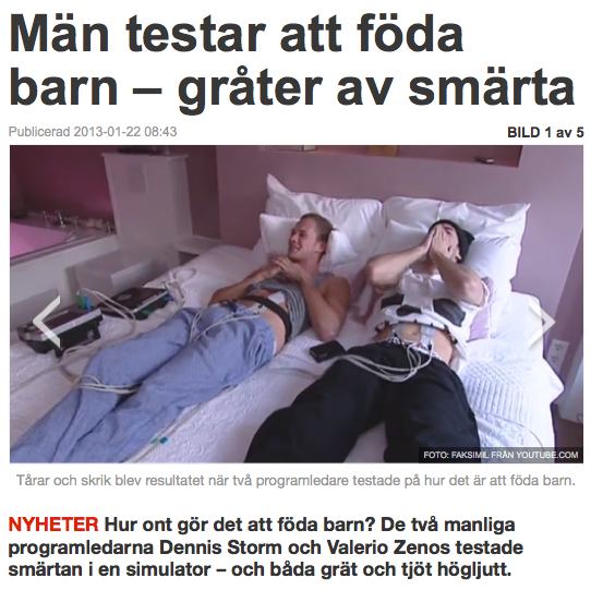 Två holländska tv-makare testade hur det känns att föda barn. Klippet spreds som en löpeld över hela världen – och Nyheter24 var först i Sverige. En klassisk klicksuccé!