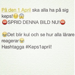 Vilket lämnar några frågor obesvarade. Är det hela ett mindre lustigt aprilskämt? Och på vilket "kul" sätt kan lärarna tänkas reagera? Borde de inte vara vana vid att elever har keps?