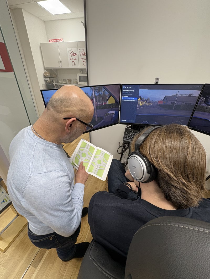 – Du kommer nog behöva mer än dubbelt så många simulatortimmar från och med nu, men då med högre teorikunskap om skyltar och riskmedvetenhet, säger Din Körskolas körskolelärare Abraham Elias.