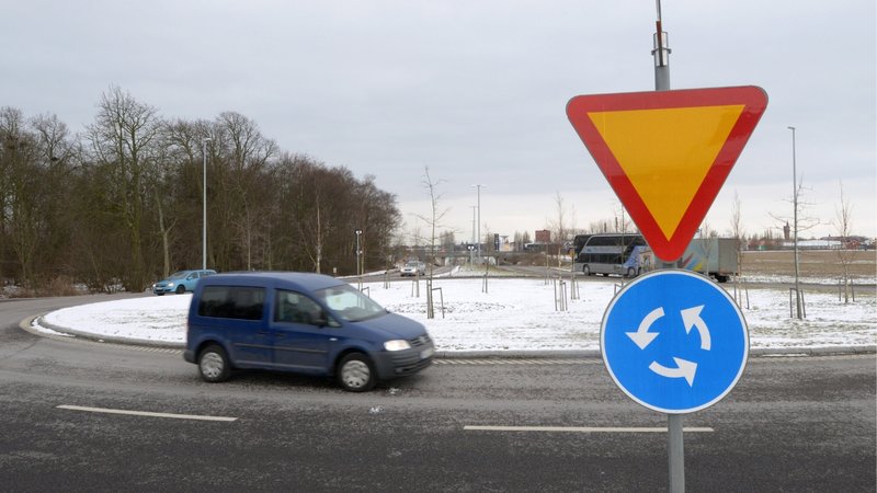 Lämna företräde. Du har väjningsplikt mot fordon i cirkulationen.