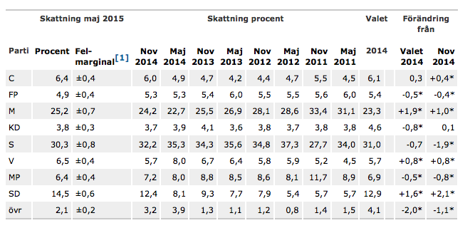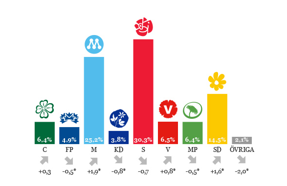 I dag presenterade Statistiska Centralbyrån (SCB) sin återkommande partisympatiundersökning – och föga förvånande går Sverigedemokraterna starkt framåt. I den nya undersökningen får partiet 14,5 procent, en ökning med 1,6 procentenheter jämfört med valresultatet.