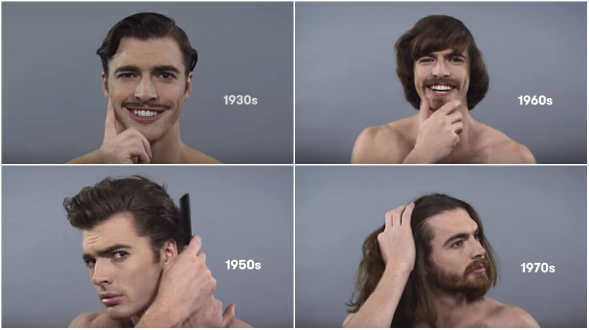 Här är videon som visar hur förändringen sett ut: från 1910-talets vattenkamningar och mustasch till 2010-talets... ja, vad är det egentligen som är mest typiskt dagens man?