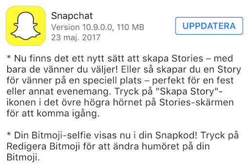 Allas vår favoritapp Snapchat har äntligen släppt en ny uppdatering. Kanske för att undvika risken för att försvinna helt från marknaden... I den finns en stor nyhet – och en mindre som betyder att din Bitmoji-selfie visas i din snap-kod. Men mer om den stora uppdateringen.