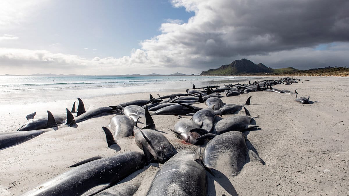 För två veckor sedan dog runt 200 grindvalar efter att ha strandat på australiska Tasmanien. Forskare vet inte exakt vad som ligger bakom fenomenet, men tror att valarnas ekolokalisering inte fungerar som den ska när de letar efter föda längs med sandiga sluttningar på havsbottnen.