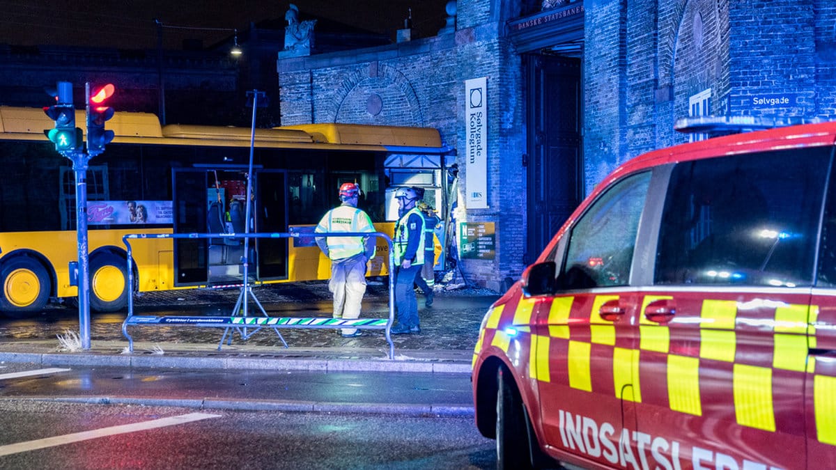 Vid lunchtid sitter bussen fortfarande fast i väggen. Eftersom byggnadens fasad riskerar att rasa går den inte att flytta på. Huset har tidigare använts som huvudkontor för järnvägsbolaget DSB, men sedan 2016 rymmer huset bland annat studentbostäder. I just den delen av huset som bussen kört in i finns inga bostäder och därför har ingen evakuering beordrats, enligt polisen.