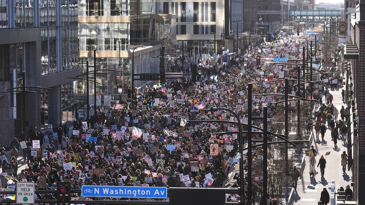 Protestmarschen genom central Minneapolis, där deltagarna bland annat skanderade ”att protestera mot ICE är inget brott”, inleddes med en konsert där bland andra Bruce Springsteen spelade.
