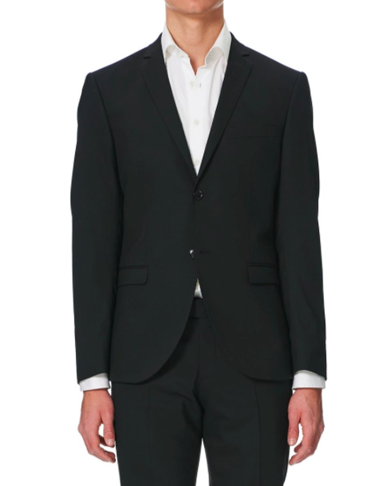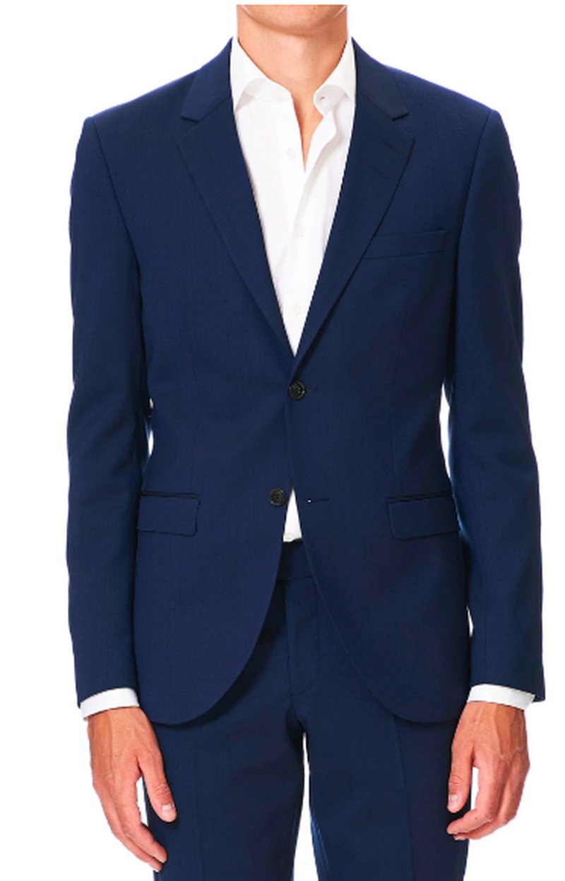 Kostym i smal passform och tyget har en fin lyster och är gjort i 97 procent ull. Här hittar du kostymen.