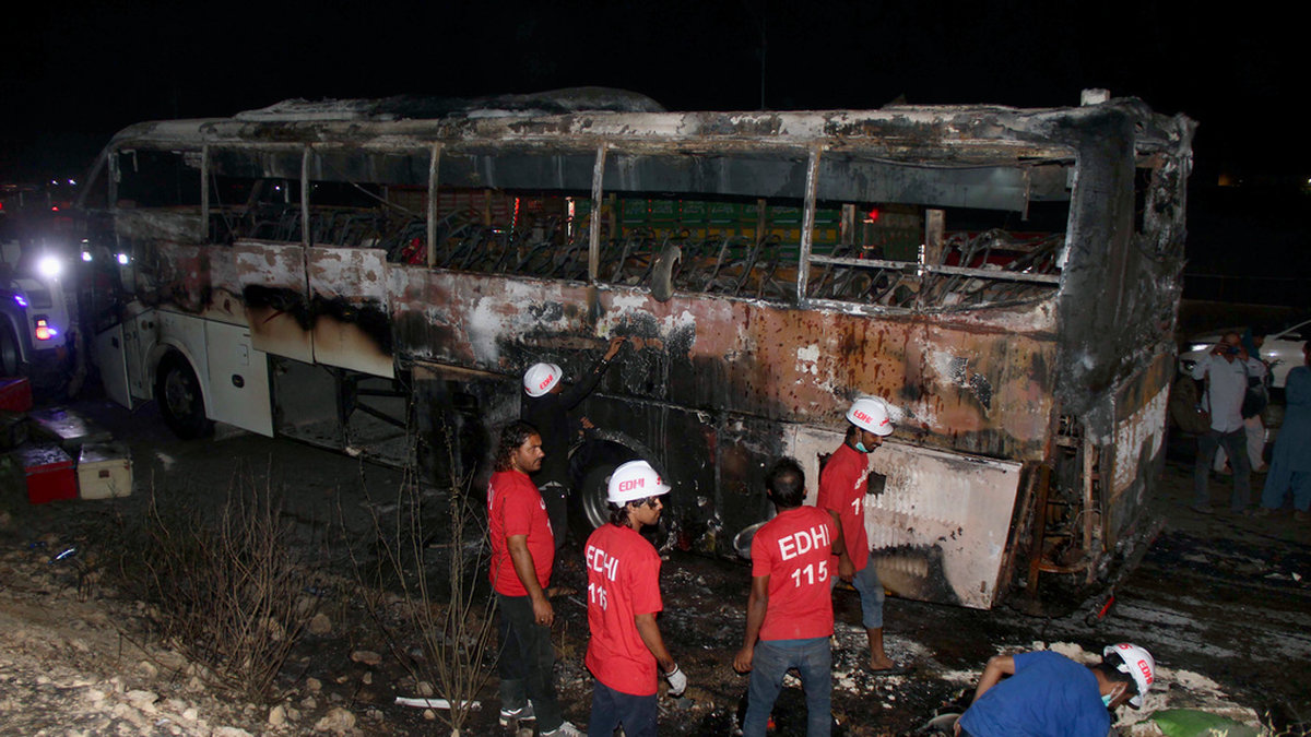 Översvämningsoffer döda i bussbrand